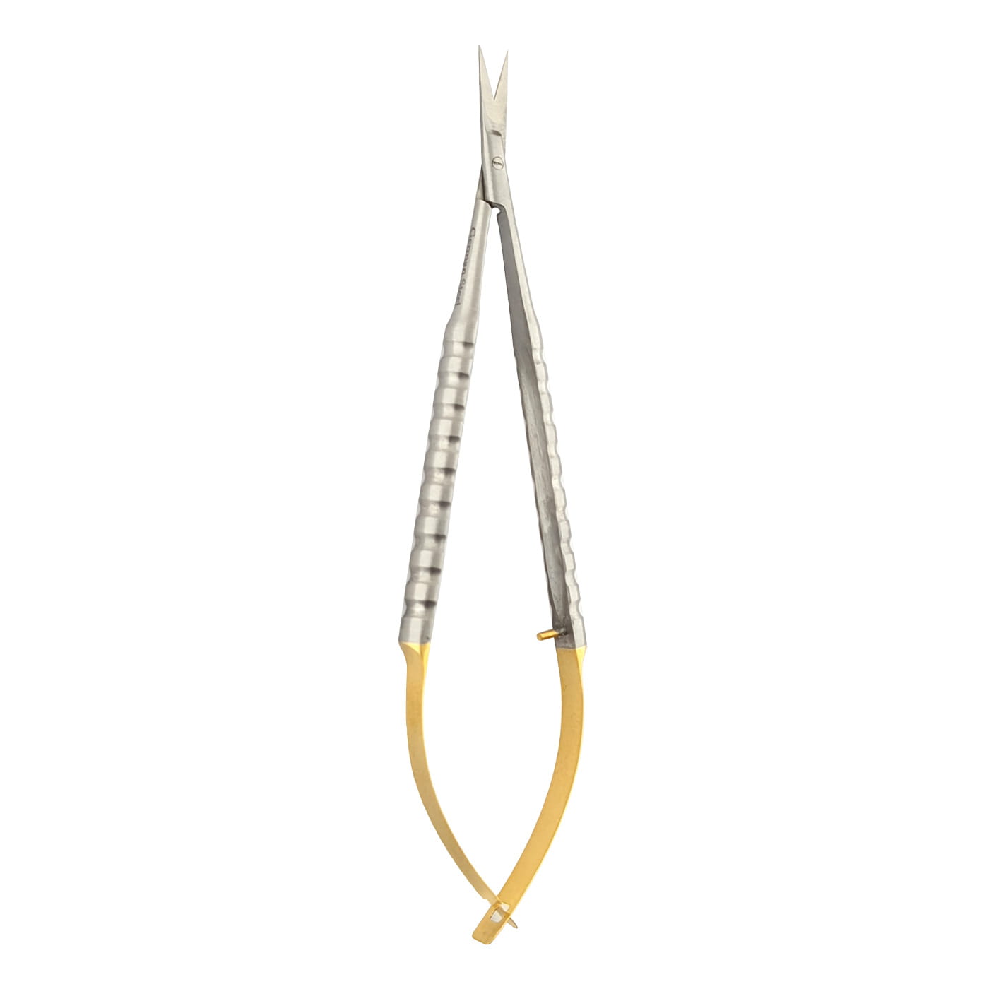 Nożyczki mikrochirurgiczne Castroviejo proste 14 cm T.C. Gold wyprodukowane przez firmę Hossa International, to specjalistyczny instrument służący do cięcia i preparowania tkanek miękkich, oraz rozcinania nici chirurgicznych czy materiału szewnego innego rodzaju w mikrochirurgii. Jest to szczególny rodzaj operacji chirurgicznej wykonywanej przy pomocy specjalistycznego sprzętu optycznego jak mikroskopu operacyjnego i bardzo wykwalifikowanego instrumentarium.