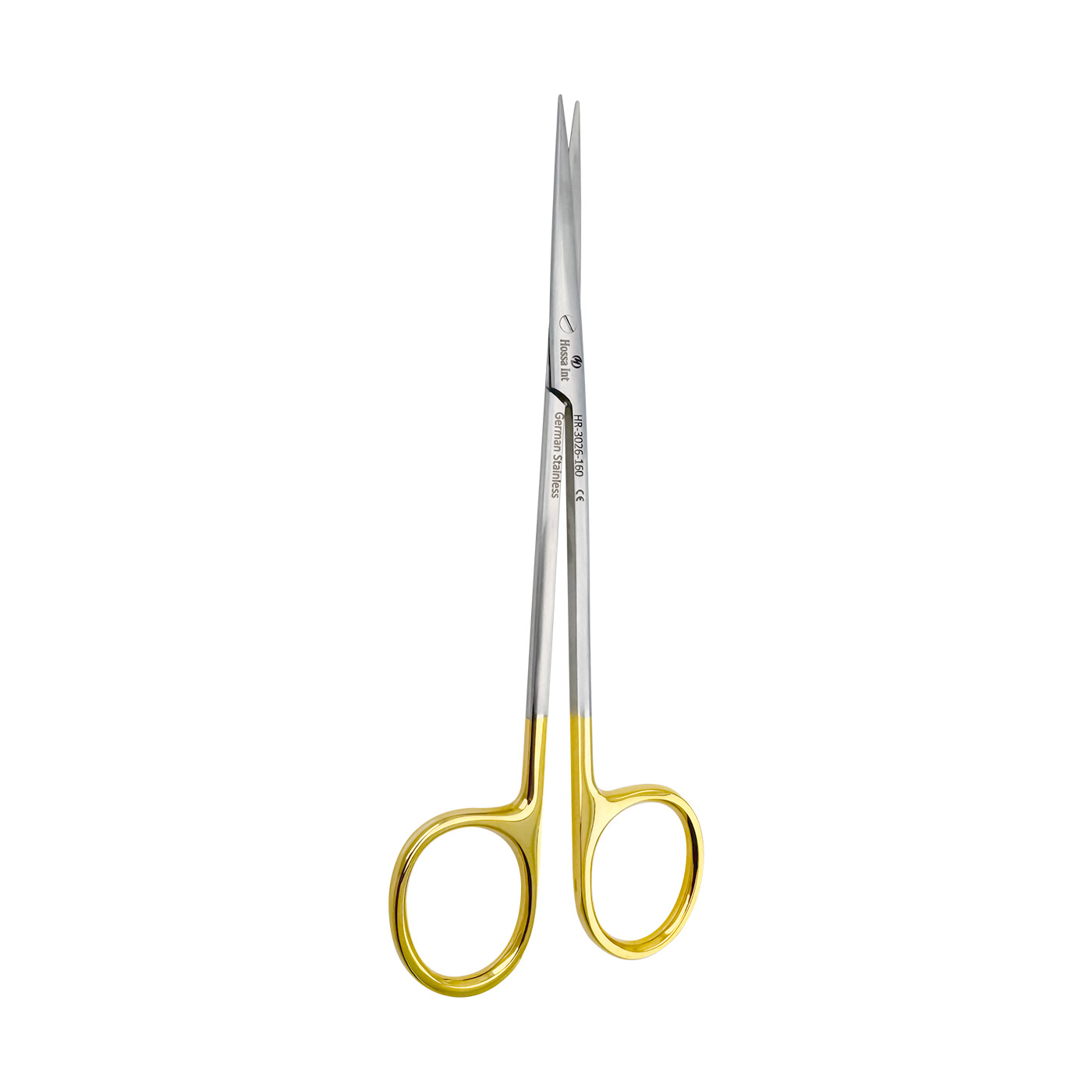 Nożyczki Metzenbaum T.C. Gold Fino o długości 16 cm to precyzyjne narzędzie chirurgiczne przeznaczone do preparowania delikatnych tkanek oraz cięcia lekkich materiałów, takich jak opatrunki czy chusty chirurgiczne. Wyróżniają się smukłą, cienką konstrukcją typu Fino, która umożliwia bardzo dokładną i kontrolowaną pracę w polu operacyjnym. Charakterystyczna dla tego typu nożyczek jest również przewaga długości trzpienia nad ostrzami, co zwiększa precyzję ruchów.