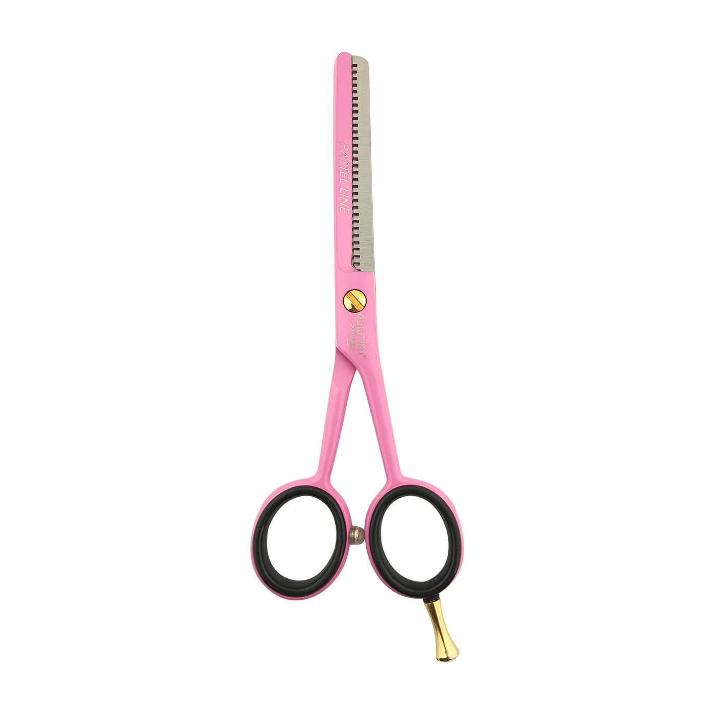 GoldTon Nożyczki Fryzjerskie degażówki 5.5'' różowe to profesjonalne nożyczki fryzjerskie wykonane z wysokiej jakości japońskiej, utwardzanej stali nierdzewnej, dzięki czemu ostrza są wytrzymałe i zachowują ostrość. Dodatkowo stal ta charakteryzuje się bardzo wysoką odpornością na korozję. Nożyczki są pokryte antyalergiczną ceramiczną powłoką chroniącą użytkownika przed kontaktem z niklem. Mają matową powłokę, co nadaje im elegancki wygląd. Nożyczki dedykowane są dla osób praworęcznych.