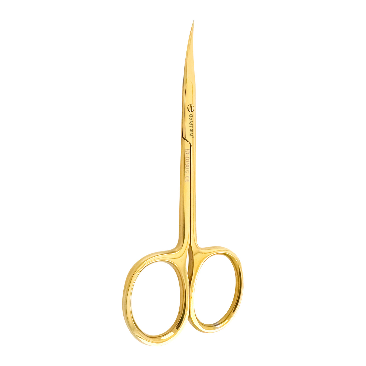 Nożyczki do obcinania skórek 10.5 cm Goldton to narzędzie kosmetyczne wykonane z niemieckiej stali nierdzewnej używanej do produkcji narzędzi medycznych. Dodatkowo, produkt posiada tytanowe wykończenie w kolorze złotym, nadając im długotrwałą żywotność i elegancki design.