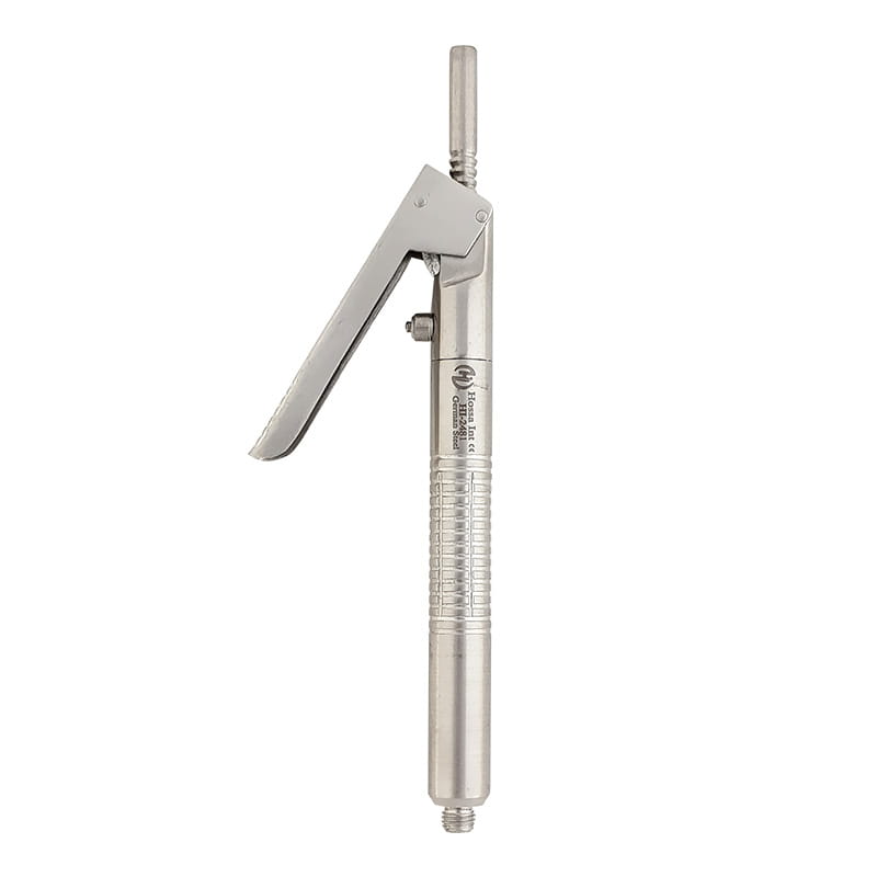 - Budowa strzykawki: 1.Tuleja do naboju, 2.Złącze bagnetowe, 3.Gwint EU do zamontowania igły, 4.Tłok dozujący, 5.Dźwignia dozująca, 6.Uchwyt z częścią antypoślizgową na palec